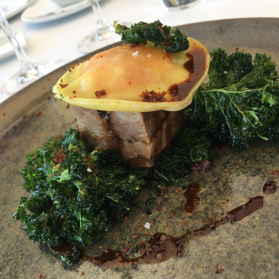 A viagem pelos sabores de Portugal seguiu com o chef Pedro Mendes, do restaurante Narcissus Fernandessi, na Vila Viçosa. Em um dos pratos do chef a sua homenagem a Paul Bocuse: a sopa VGE na versão dele, com pé de porco e coentro, a melhor surpresa da noite.